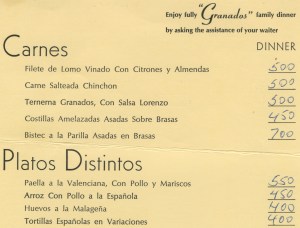 To view a scanned menu from Granados, click here.